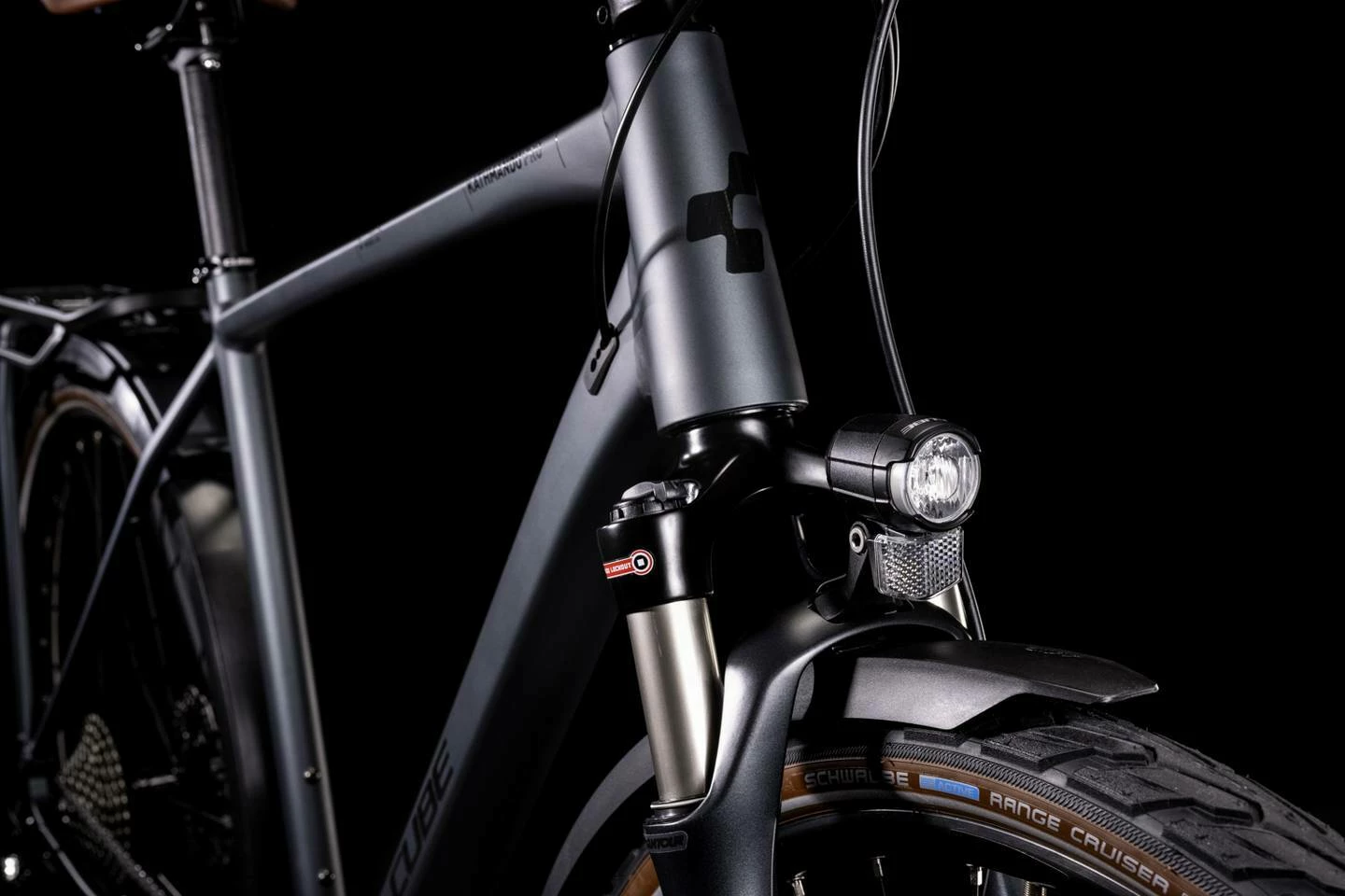 Das Kathmandu Pro haben wir für die Saison 2022 komplett überarbeitet – es hat alles, was man braucht, und kommt ohne unötigen Schnickschnack aus. Mit dabei sind der überarbeitete integrierte Gepäckträger, extralange Schutzbleche, Vorder- und Rücklichter und der CUBE FM Seitenständer. Das Bike ist damit nicht nur der optimale Begleiter für den Alltag; es stellt dank seiner robusten Konstruktion auch auf langen Strecken seine Klasse unter Beweis. Komfortabel: Die Suntour Luftfedergabel schluckt sämtliche Schläge von Buckeln oder Schlaglöchern auf der Strecke weg wie nichts. Und die breit gefächerte, superzuverlässige Shimano 3×10-fach Schaltung macht jede Route zum Genuss. Dazu passende hydraulische Shimano Scheibenbremsen verzögern das Bike sicher und souverän, und zwar bei jedem Wetter. Ob Großstadtdschungel oder Outback – das Kathmandu Pro macht alles mit!